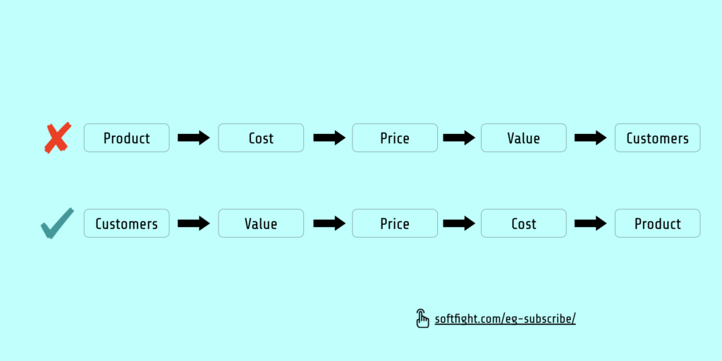 If you know how much value you create, you can already estimate how much value you can realistically capture back (typically, between 10 and 30%). If your customers will achieve savings of 10.000 EUR per year, you should not price your product below 1.000 EUR per year and it’s likely that you will not be able to charge more than 3.000 EUR per year.