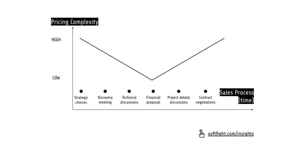 For all the other moments in the sales process, it’s ok to have an increasingly complex pricing model and pricing system. (The pricing model is what the customers see. The pricing system is the pricing model + all other internal aspects of pricing: segmentation, calculation algorithms, discount rules, etc.)
