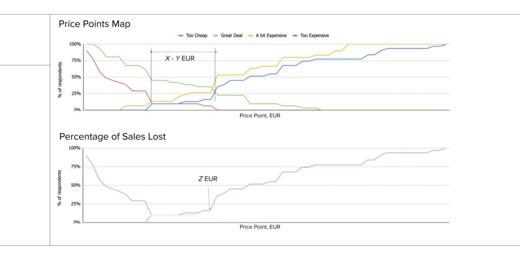 This will show you what is an optimum price interval (minimum and maximum) from the customers’ perspective.